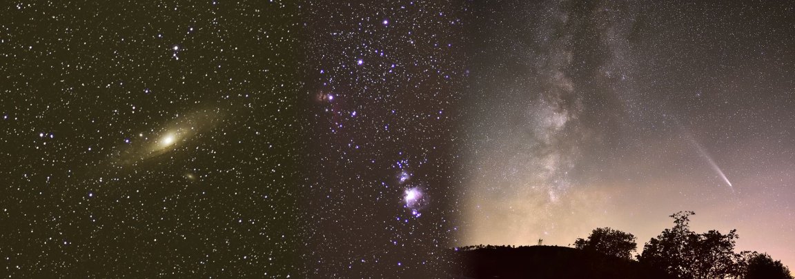 Galaxie d’Andromède, Nébuleuse d’Orion (hiver), Voie lactée et comète Tsuchinshan-Atlas